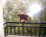 スリランカの古都、仏の歯のあるお寺で有名なキャンディーのホテルチランカの部屋には「モンキーが部屋に入ってくるので、必ず窓を閉めてください」との厳重な注意書きが。窓を覗くと確かに、お猿さんがベランダの柵を歩いていました。すかさず写真におさめました。スリランカでは象もよく見かけ、道の途中では病気になった象が点滴を受けている様子にも出会いました。 |